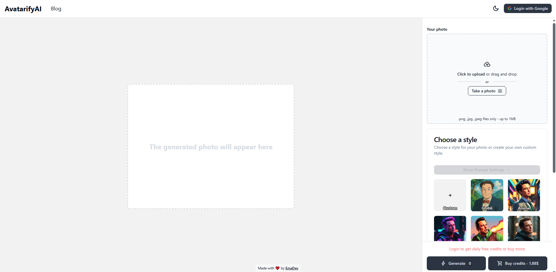 1. Загрузка фото — желательно, чтобы лицо было хорошо видно.