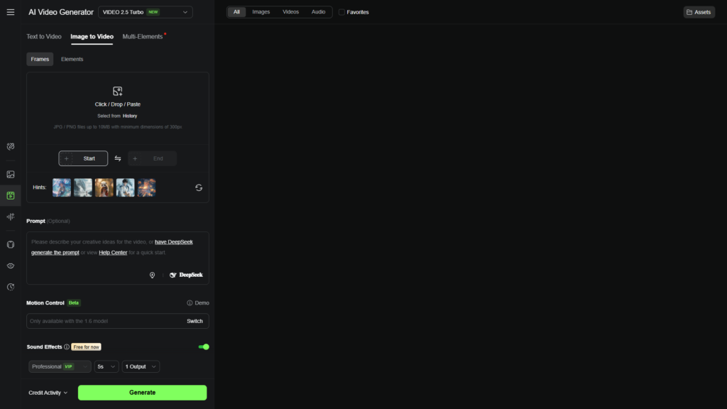 • Возможности: Генерация роликов из текста или изображений. Настройка пропорций кадра, включая вертикальные.