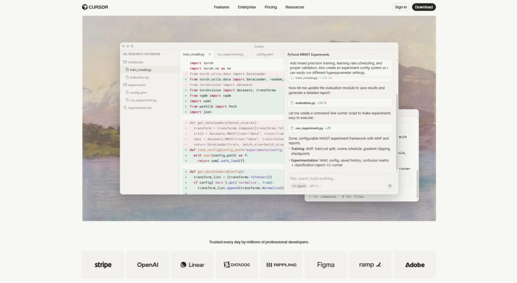 Что в нём особенного? Cursor умеет не просто писать код по запросу, а скорее работать над проектом в целом: сразу в нескольких файлах, понимая их взаимосвязь. Можно описать задачу — а он сам настроит окружение, разобьёт код на модули и даже поправит ошибки. Использует модели от OpenAI, Google, DeepSeek, Anthropic — можно выбрать.